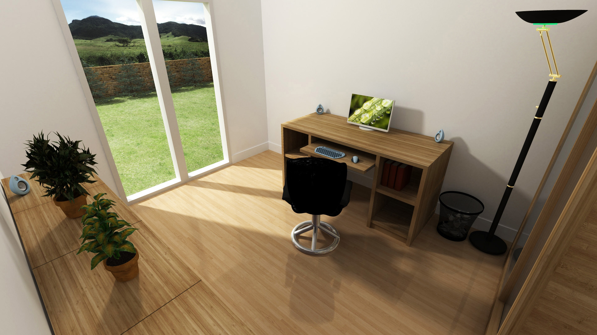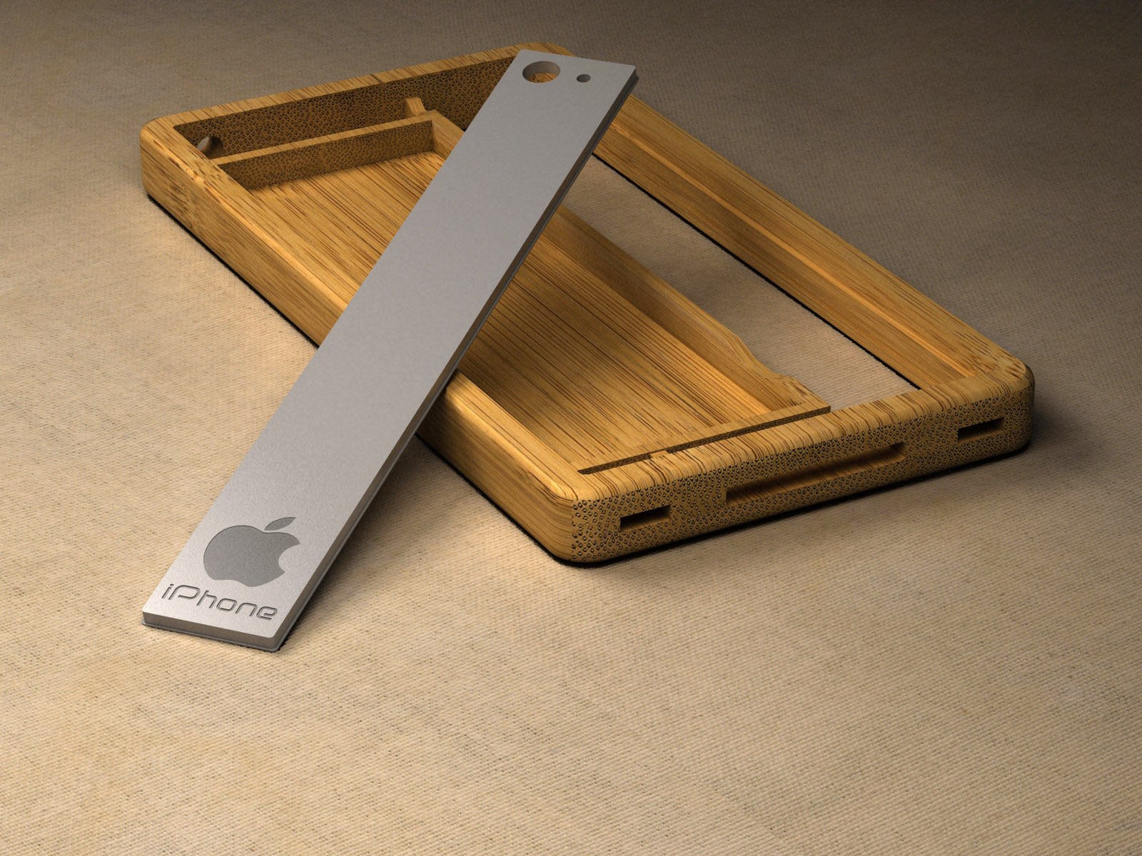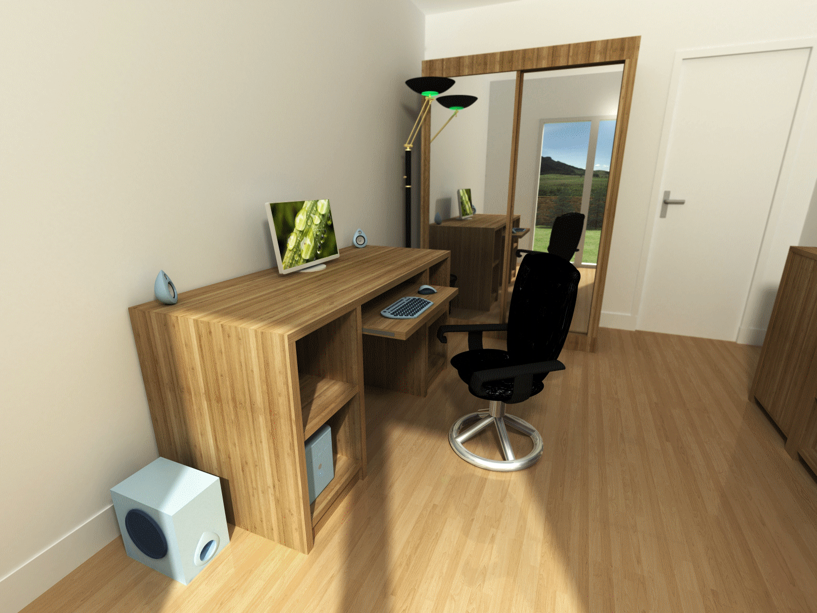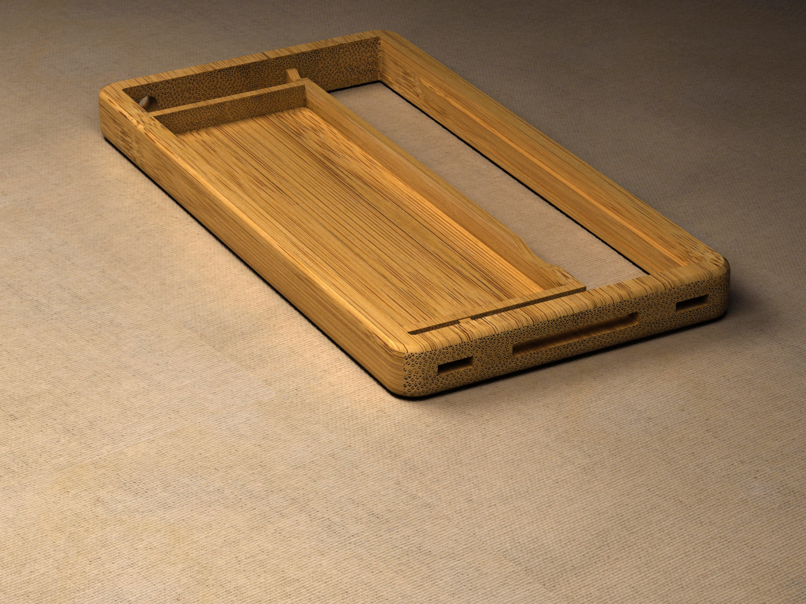 Premier projet réalisé sur 3ds max en 2012, pour appendre à utiliser ce logiciel qui permet plus de possibilités en termes de modélisation, réalisme du rendu, d'application de textures,... Cette dernière a été réalisée en scannant une planche de bambou, et déployée afin de respecter la coupe longitudinale ou transversale des fibres.